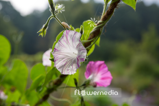 Common morning glory with the scientific name: Ipomoea purpurea, a species of the genus Ipomoea (Evening glory) in the family Convolvulaceae.