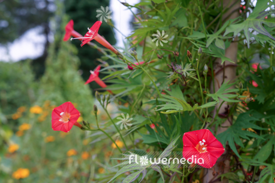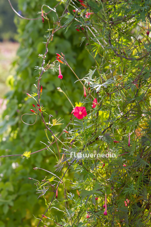 Cardinal climber with the scientific name: Ipomoea x multifida, a species of the genus Ipomoea (Evening glory) in the family Convolvulaceae.