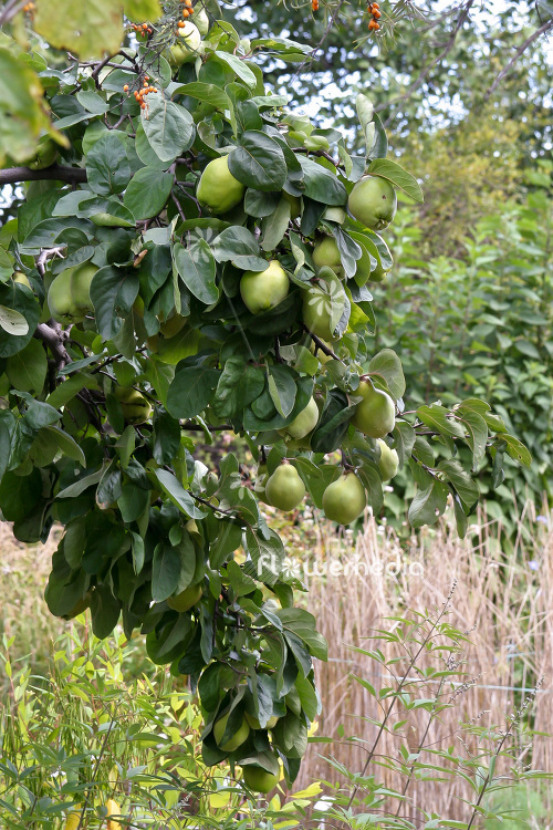 Quince with the scientific name: Cydonia oblonga, a species of the genus Cydonia (Quince) in the family Rosaceae.