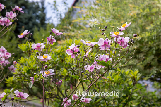 Japanese anemone with the scientific name: Anemone x hybrida, a species of the genus Anemone (Windflower) in the family Ranunculaceae.