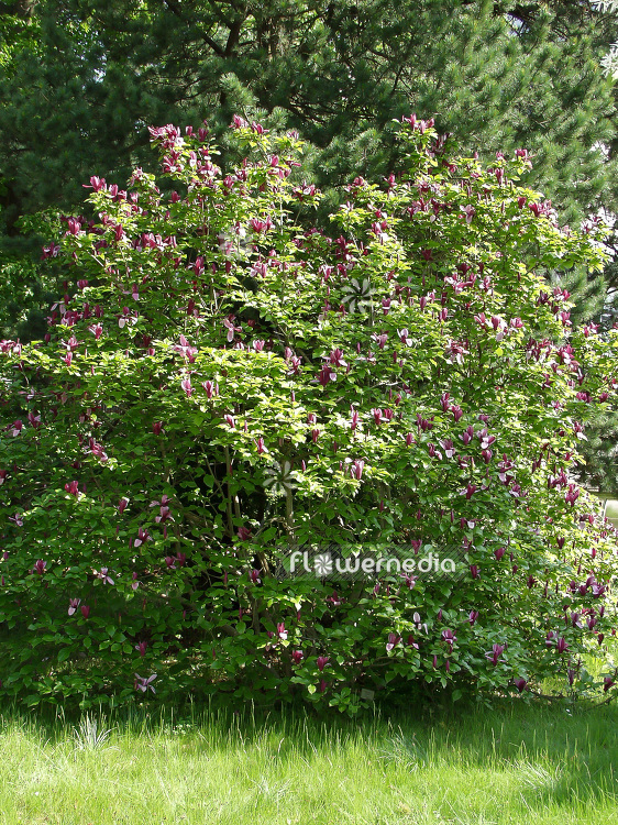 Black lily magnolia with the scientific name: Magnolia liliiflora 'Nigra', a variety of the genus Magnolia (Magnolia) in the family Magnoliaceae.