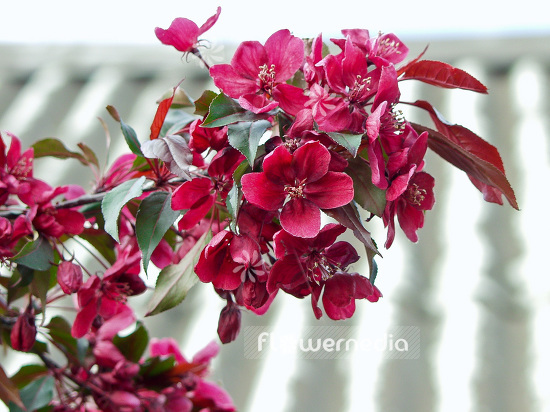 Crab apple with the scientific name: Malus 'Royalty', a variety of the genus Malus (Apple) in the family Rosaceae.