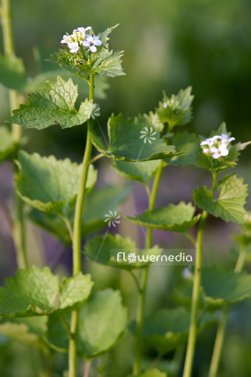 Garlic mustard with the scientific name: Alliaria petiolata, a species of the genus Alliaria (Garlic mustard) in the family Brassicaceae.