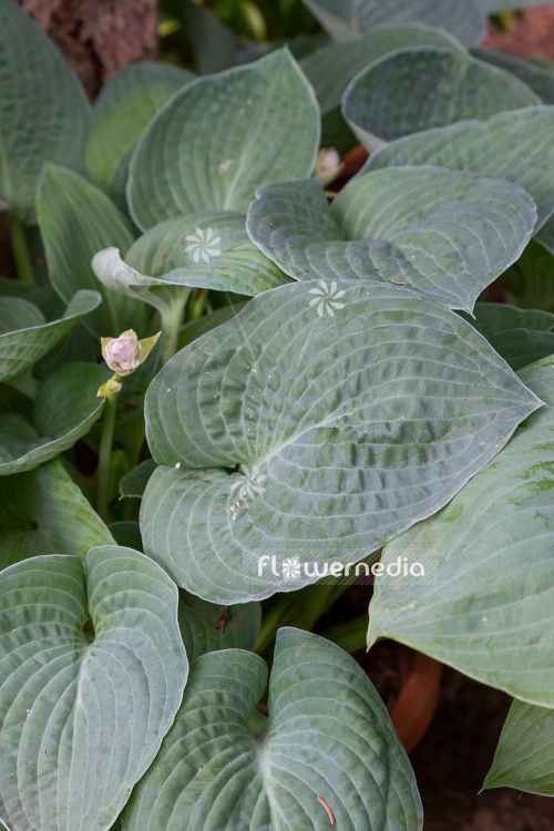 Plantain lily with the scientific name: Hosta 'Abquia Blue Crinckles', a variety of the genus Hosta (Blue day lily) in the family Asparagaceae.