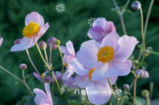Japanese anemone with the scientific name: Anemone x hybrida 'Richard Ahrens', a variety of the genus Anemone (Windflower) in the family Ranunculaceae.