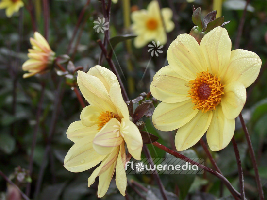 Dahlia with the scientific name: Dahlia 'Classic Summertime', a variety of the genus Dahlia (Dahlia) in the family Asteraceae.