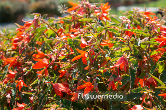 Begonia with the scientific name: Begonia 'Bellavista Deep Orange', a variety of the genus Begonia (Blooming fool) in the family Begoniaceae.