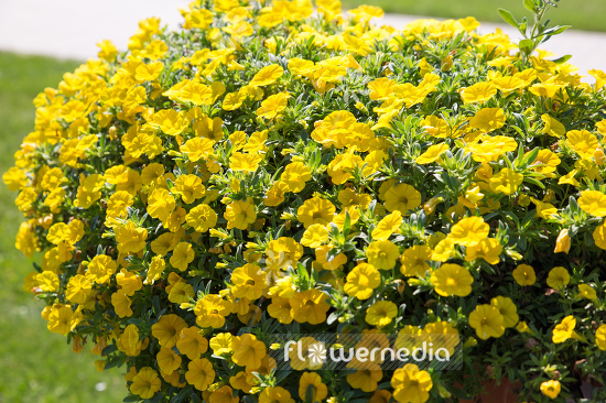 Mini petunia with the scientific name: Calibrachoa 'Aloha Classic Goldrush', a variety of the genus Calibrachoa in the family Solanaceae.