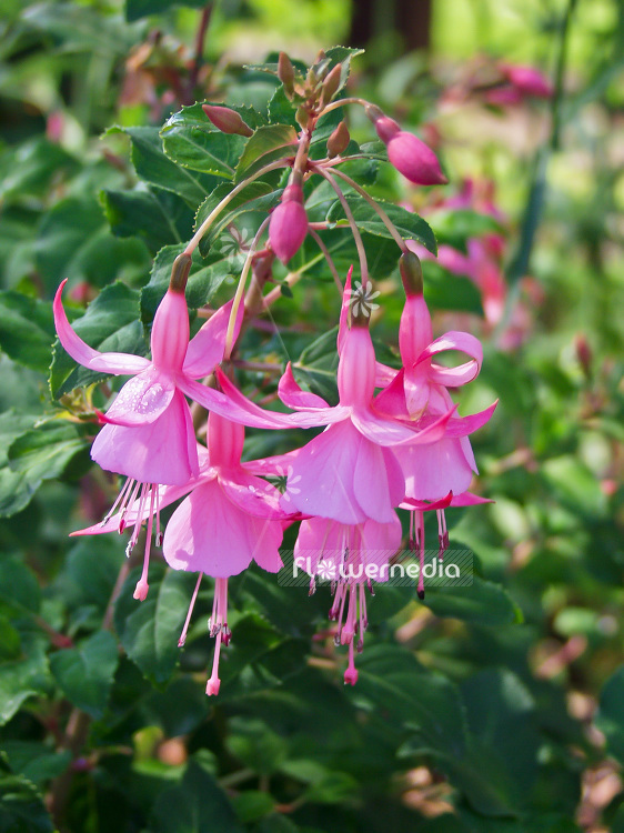 Fuchsia 'Beacon Rosa', a variety of the genus Fuchsia in the family Onagraceae.