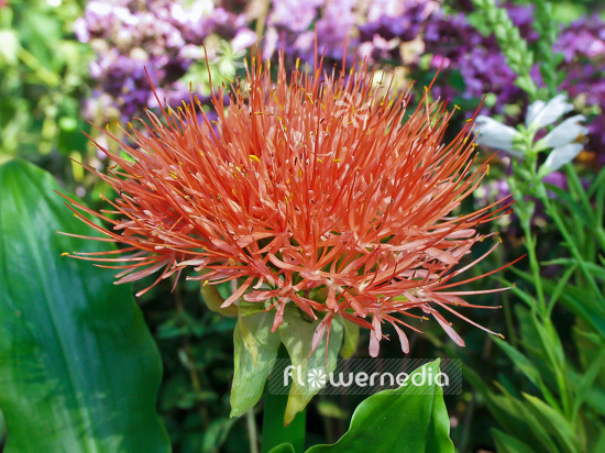Blood flower with the scientific name: Scadoxus multiflorus, a species of the genus Scadoxus in the family Amaryllidaceae.